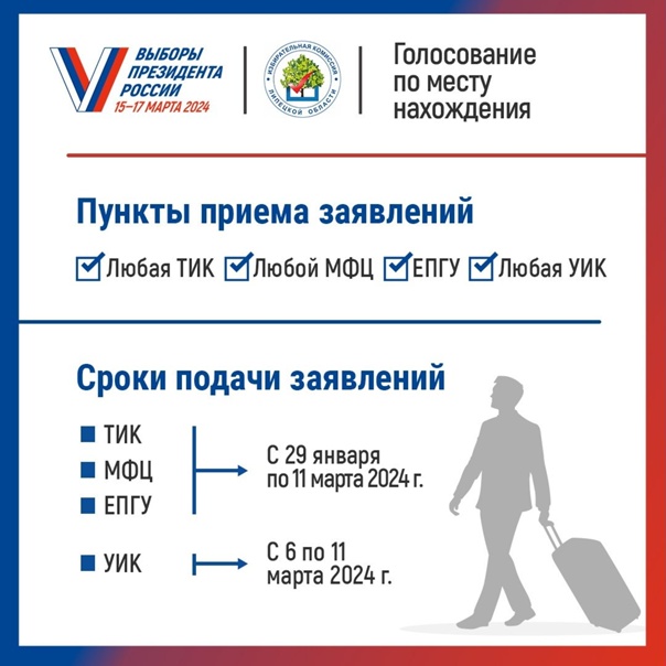 Заявления принимают территориальные избирательные комиссии и МФЦ. Документ можно также оформить на Едином портале государственных и муниципальных услуг. Участковые избирательные комиссии будут вести прием с 6 по 11 марта.